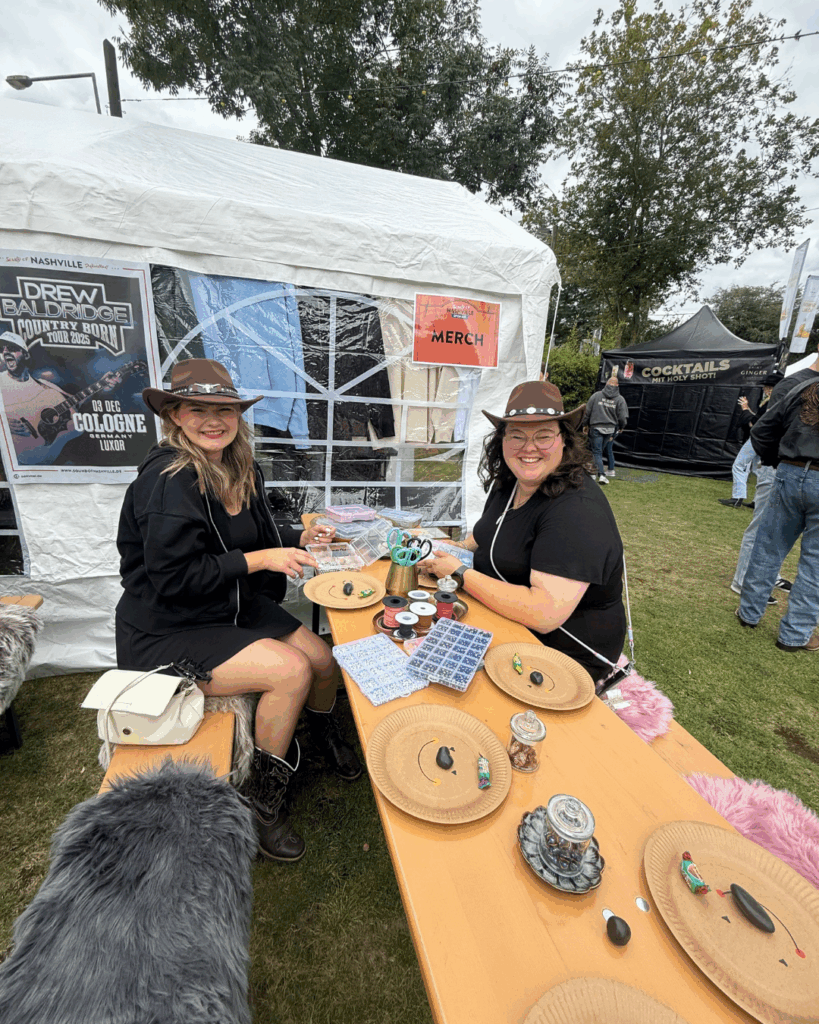 Ein Festival ist mehr als nur Musik. Es ist ein Ort voller Begegnungen, Emotionen und gemeinsamer Momente. Genau hier durfte ich mit meinem kreativen Workshop in Köln beim Sound of Nashville Festival einen besonderen Beitrag leisten. Abseits der Bühne bot sich den Besucherinnen und Besuchern die Möglichkeit, innezuhalten, kreativ zu werden und ein ganz persönliches Erinnerungsstück zu gestalten.
